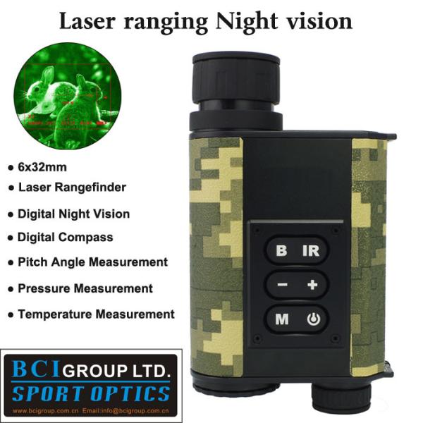 Multifunction Laser ranging Night vision , integrated laser rangefinder, digital night vision, digital compass, pitch angle measurement, pressure measurement, temperature measurement in one. The optical amplification system using 6x32. Suitable for viewing wildlife at night,fishing,hunting and security personnel.